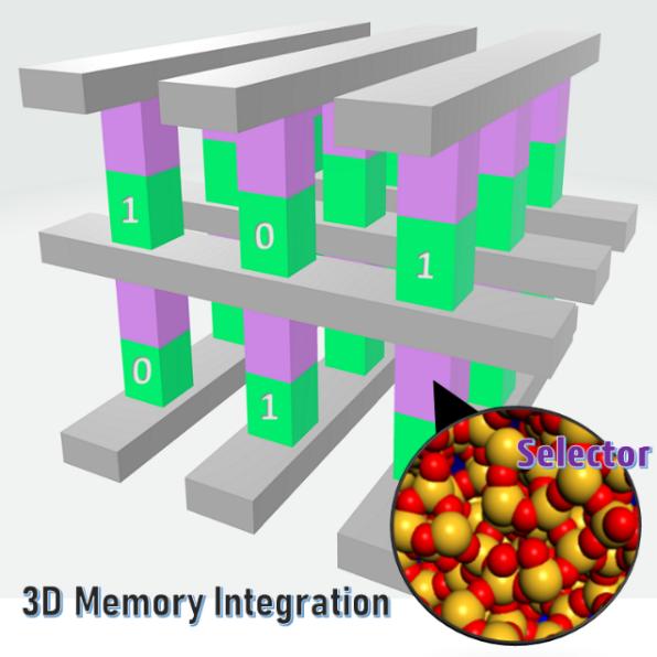 图1.双层结构的三维相变存储器示意图,由存储单元和选通单元构成