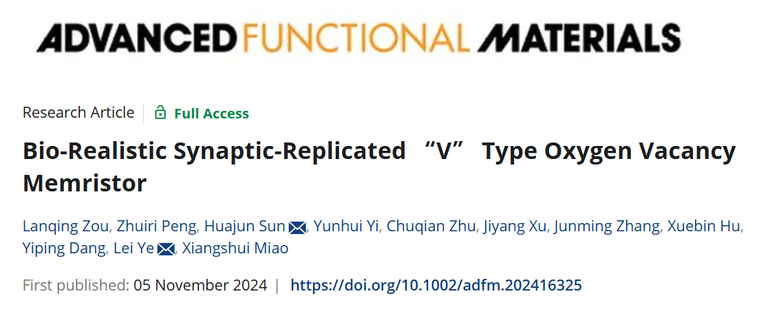 文章链接Bio-Realistic Synaptic-Replicated “V” Type Oxygen Vacancy Memristor https://doi.org/10.1002/adfm.202416325