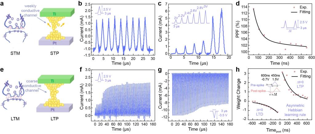 图3 器件实现短时可塑性和长时可塑性图