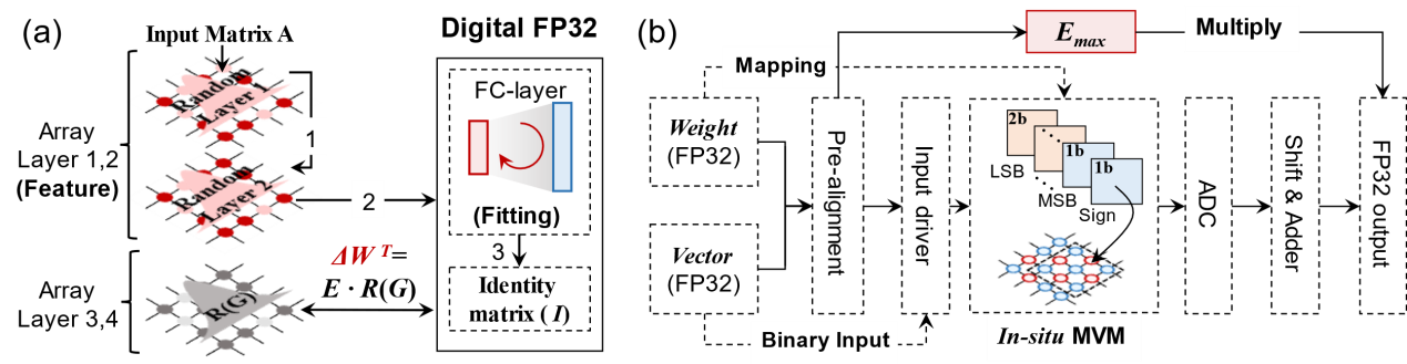 图3. 神经网络求解器的混合精度训练框架及原位浮点计算架构