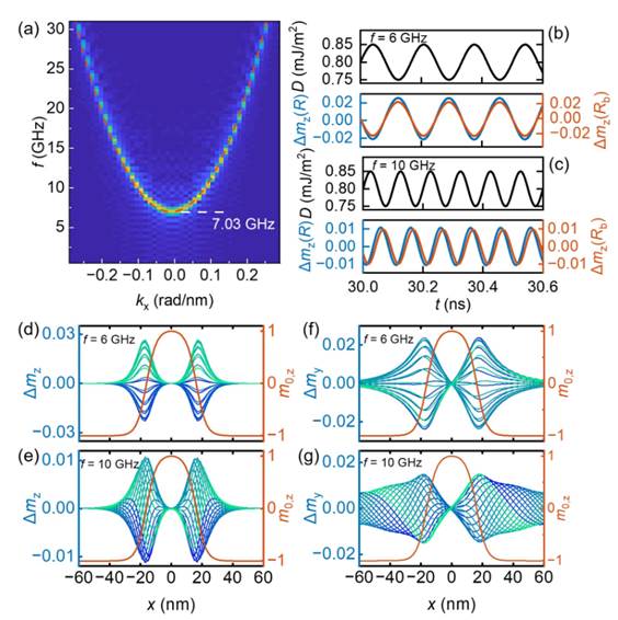 图2 斯格明子的呼吸模式(6 GHz)和自旋波模式(10 GHz)