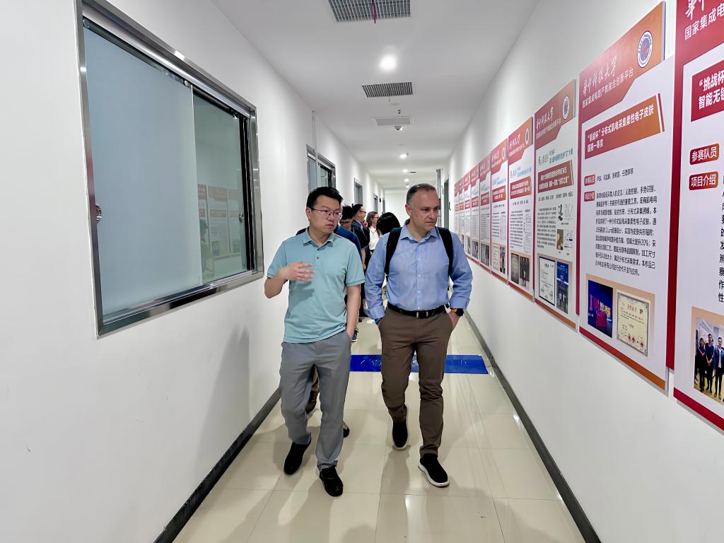 座谈结束后,副经理李祎介绍并带领爱丁堡大学代表团一行参观了国家集成电路产教融合创新平台,帮助代表团一行更加了解平台的组成及其对于实践型人才培养的意义。