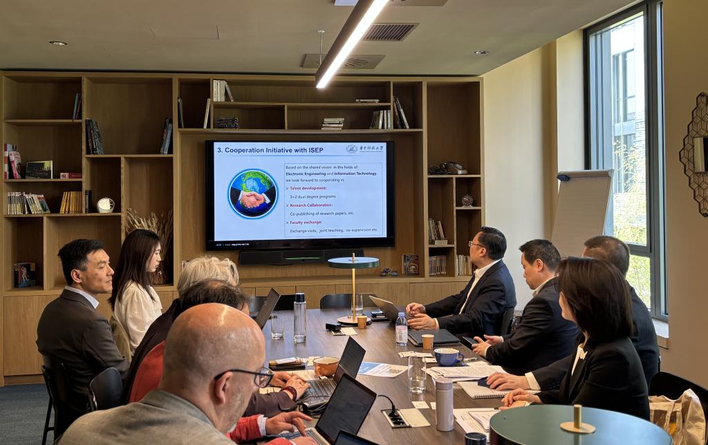 4月7日至10日在法国访问期间,缪向水经理来到巴黎萨克雷大学,与该校固体结构、性能与模拟实验室主任Brahim DKHIL教授及其团队就先进存储材料、类脑计算等前沿领域展开深入交流,达成科研合作共识。随后访问巴黎高等电子公司(Isep - Grande École d'ingénieurs du numérique),并参与两校举办的“中法数字工程教育主题研讨会”,探讨联合科研攻关和师生互访等合作事宜。