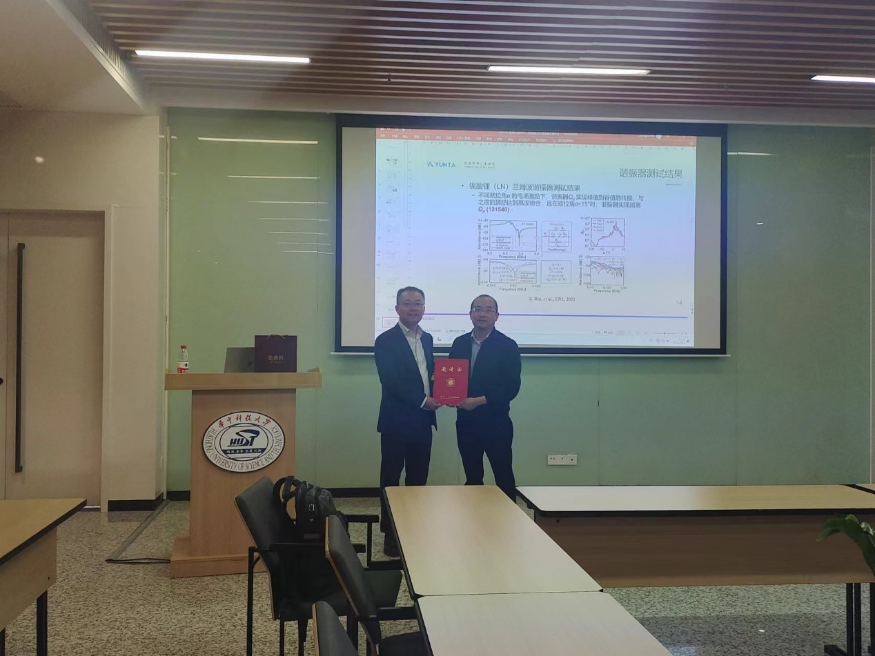 在交流互动环节,左成杰教授与在场的教师和员工展开了深入的交流和讨论,分享彼此的科研经验和心得。左成杰教授对于高频与大带宽滤波器的深入研究,为在座的各位老师和同学提供了深刻的启发。罗为教授会后为左成杰教授颁发了邀请函证书。