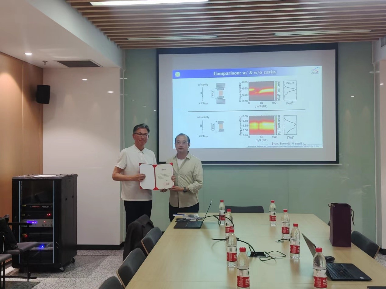 在交流互动环节,Yoshichika OTANI教授与在场的教师和员工展开了深入的交流和讨论,分享彼此的科研经验和心得。Yoshichika OTANI教授对于自旋转换的深入研究,为在座的各位老师和同学提供了深刻的启发。罗为教授会后为Yoshichika OTANI教授颁发了邀请函证书。