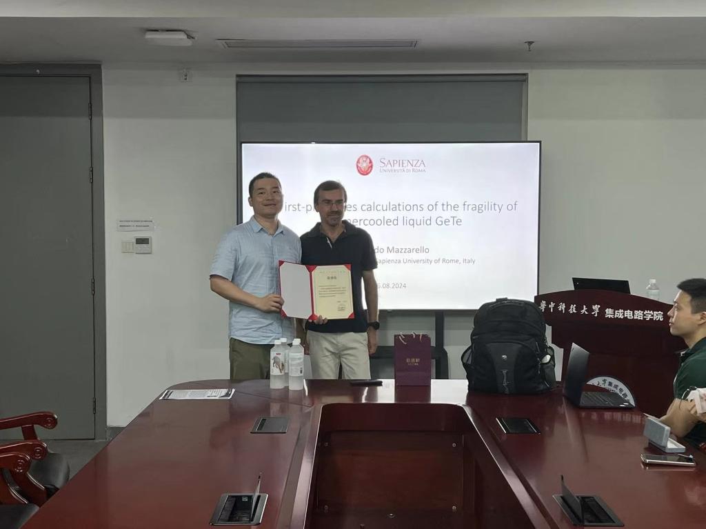 2024年8月26日上午9时30分,应公司徐明教授的邀请,罗马第一大学Riccardo Mazzarello副教授做客“喻园·育芯”讲坛。在光电信息大楼D754会议室为公司师生带来题为《First-principles calculations of the fragility of supercooled liquid GeTe》的相关报告。