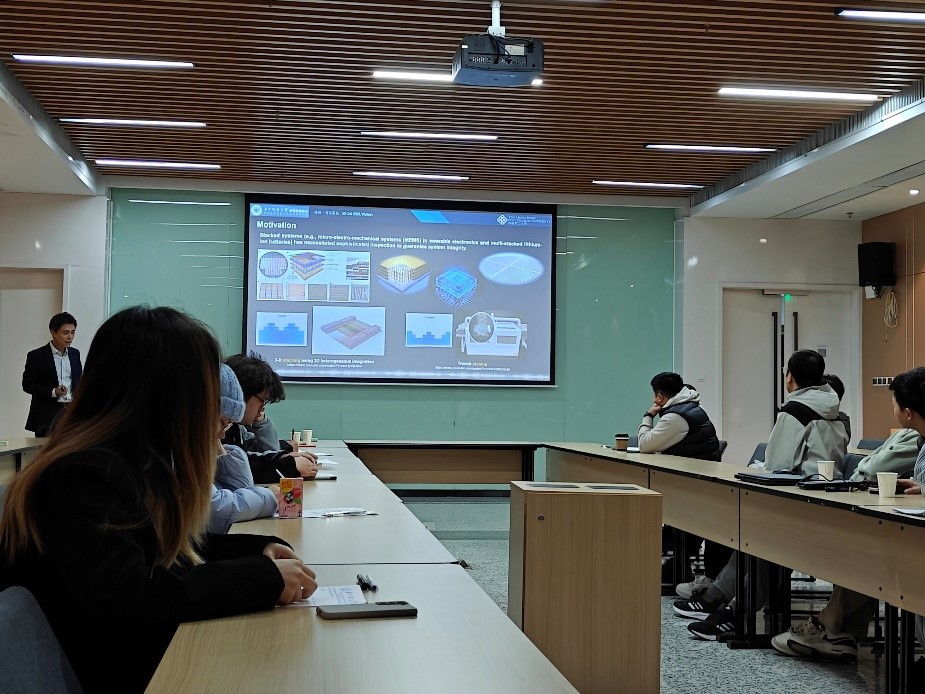 2025年10月23日上午10:00,由公司主办的“喻园·育芯”讲坛第113期在光电信息大楼C111会议室顺利举行。本次讲坛邀请了香港理工大学苏众庆教授作报告,题目为《超快激光驱动的光声微芯片表征与声流控研究》。本次讲坛由朱本鹏教授主持。