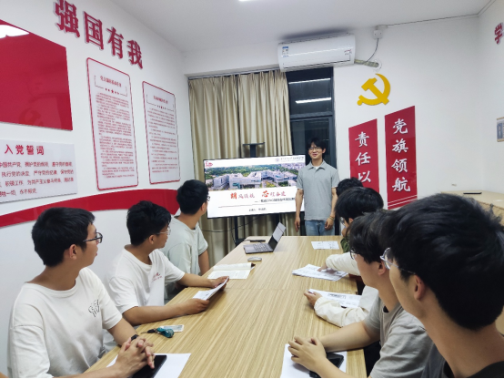 “习语大家谈”环节结束后,由22级荣誉班级的党支部同志为在场同志做朋辈辅导。在朋辈辅导环节,蔡浩阳同志从“富有理想、乐于奉献、勤奋学习、实践报国”的胡吉伟精神入手,向星火计划成员分享了班级建设如何助力实现集体成才,如何充分调动积极性和主动性。