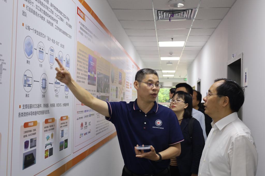 研讨会前,公司党委副书记张耀一行在雷铭的带领下观摩指导微电子工艺创新实践现场。