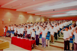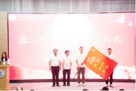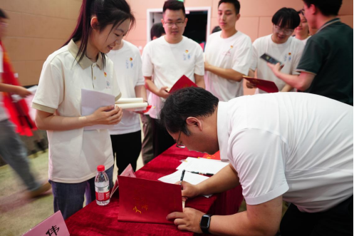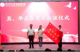 毕业生党员出征仪式上,刘伟为不同发展去向的毕业生党员授旗,“求学深造 再攀高峰” “重点行业 矢志创新” “建功基层 为民奉献” “服务西部 挥洒青春”,一句句激昂的口号在会场久久回荡,展现了集成党员逐梦前行的坚定信心和到祖国最需要的地方建功立业的使命担当。