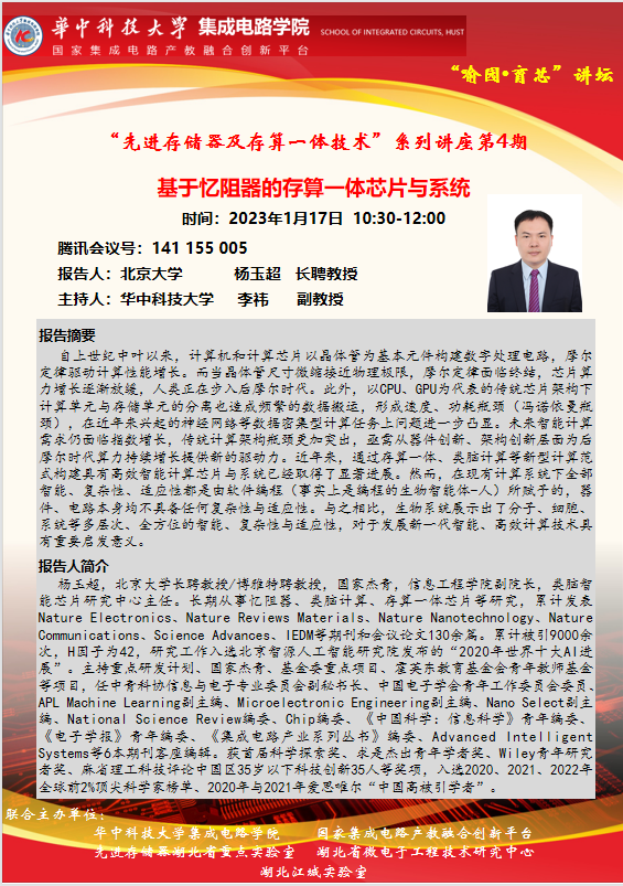 喻园•育芯讲坛第7期—“先进存储器及存算一体技术”系列主题讲座第4期:基于忆阻器的存算一体芯片与系统