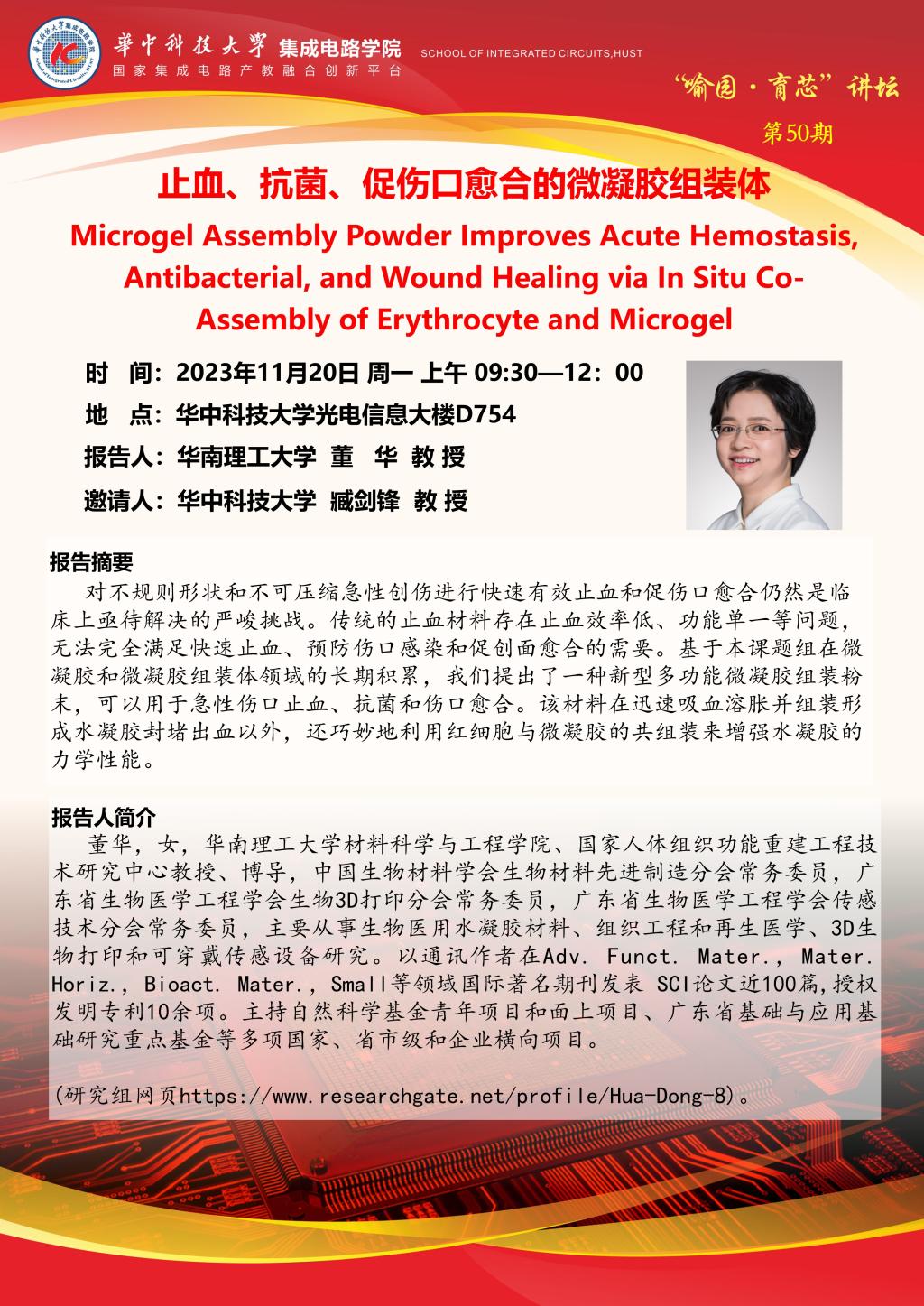 喻园•育芯讲坛第50期 :止血、抗菌、促伤口愈合的微凝胶组装体