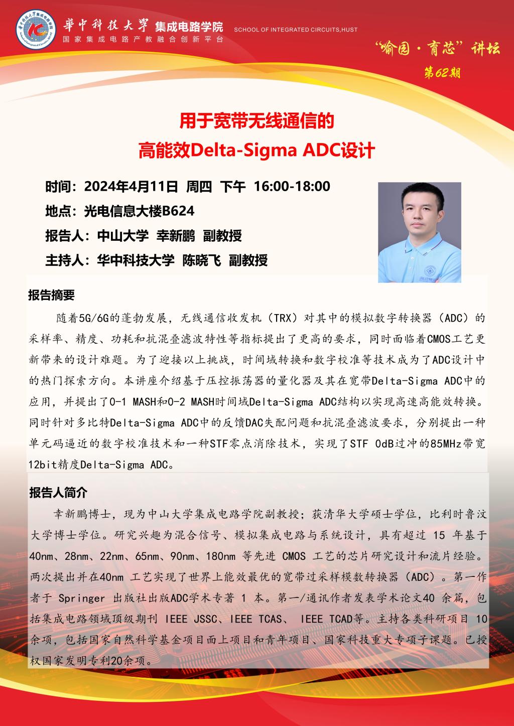 喻园•育芯讲坛第62期 :用于宽带无线通信的高能效Delta-Sigma ADC设计