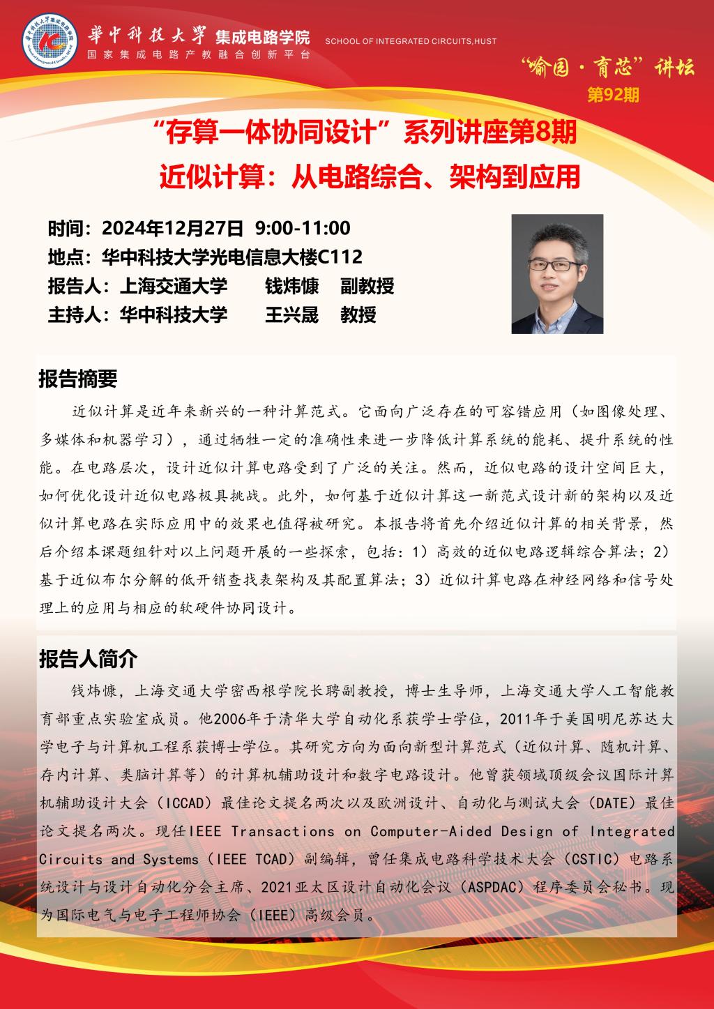 喻园•育芯讲坛第92期—“存算一体协同设计”系列讲座第8期: 近似计算:从电路综合、架构到应用