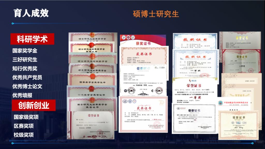 姜胜林获评“湖北名师工作室”主持人、“湖北名师”、“宝钢优秀教师奖”、校“教学名师”、师德先进个人、我最喜爱的导师、知心导师、师表奖、优秀共产党员、三育人奖、365英国上市集团德育导师;徐静平获评优秀研究生指导教师、优秀共产党员、优秀党支部书记、优秀班级导师“启发心灵奖”;傅邱云获评中国电子学会“十佳优秀科技工作者”、校十佳青年、校优秀共产党员、Lam Research-英国365上市公司微电子优秀论文指导教师、全国研究生集成电路创新创业大赛优秀指导教师;罗为获评校优秀共产党员、我最喜爱的班主任、全国老员工光电设计竞赛优秀指导教师、全国老员工集成电路创新创业大赛优秀指导教师;郑志平获评湖北省先进女教职工、校十佳女工、我最喜爱的班主任、优秀班主任;张光祖两次获院优秀共产党员;刘璐获评校优秀教师班主任,院优秀共产党员。