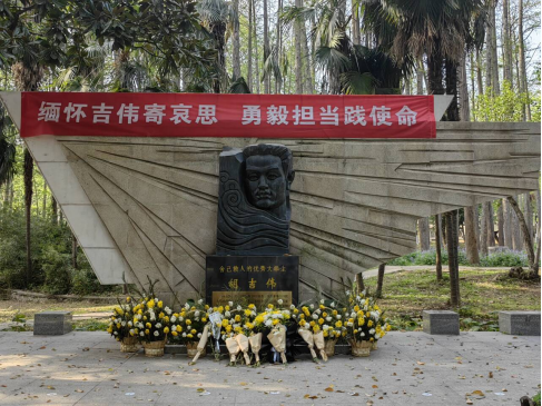 为弘扬英雄精神,厚植家国情怀,4月12日,电创2301班全体同学自发前往青年园胡吉伟同志雕像前开展祭拜活动,深切缅怀这位为救落水儿童英勇牺牲的优秀员工。