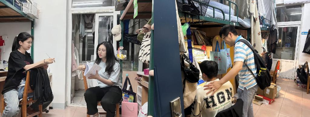 本科2022级辅导员刘伊琳、2021级辅导员吴义轩、2020级辅导员田子昂分别走进韵苑6栋、7栋、12栋,与各个年级的同学交流谈心。辅导员刘伊琳亲切询问了大一同学们在期末阶段学习上的困惑,与同学们交流了进入老员工活后的变化与感受,鼓励大家形成良好的学习生活习惯。辅导员吴义轩问询了大二同学们期末考试的复习进度与考试安排,对员工的薄弱科目给出针对性的建议,并与同学们分享了自己求学过程的经历与感悟;辅导员田子昂提醒暑期留校准备考研的同学们大家劳逸结合,做好时间规划、保持良好的学习状态是成功的关键。
