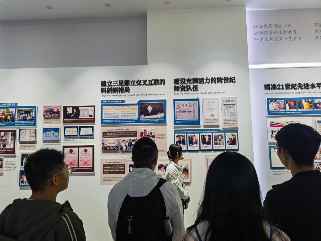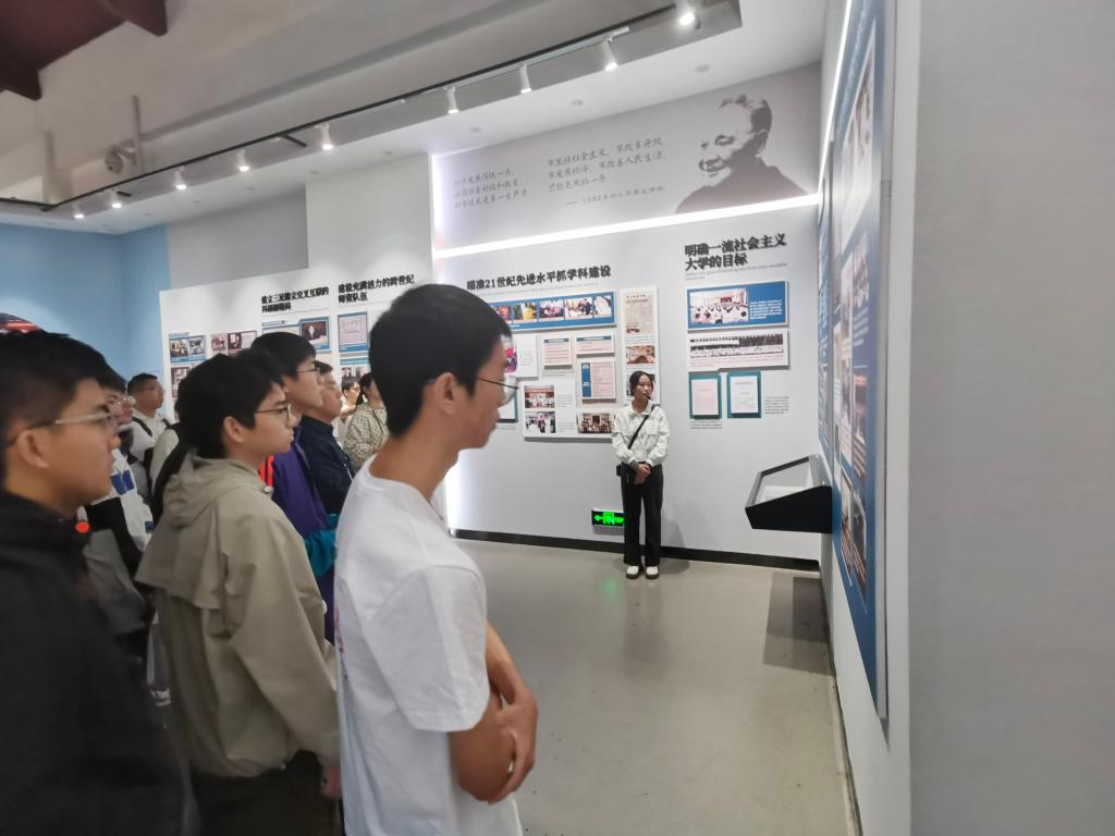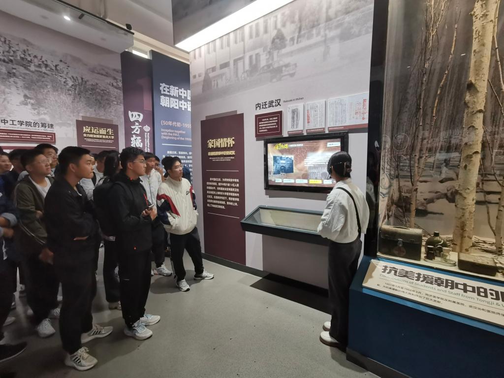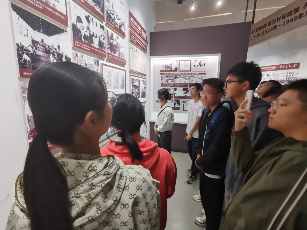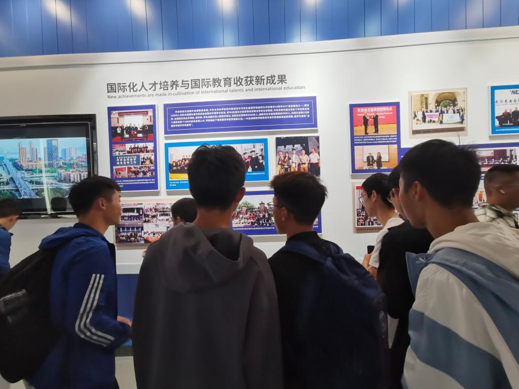 在讲解员的介绍中,校史故事历历在目。“公司在新中国的朝阳中诞生、在共和国的旗帜下成长、在改革开放中腾飞、在新时代迈向世界一流……”,置身于肃穆而充满历史感的校史馆中,同学们通过听讲、观展、阅读等途径,沉浸于校史学习的浓厚氛围中。依托厚重校史的动人故事、复刻还原的真实情境,同学们得以感受一代代华科大人的心血与拼搏。