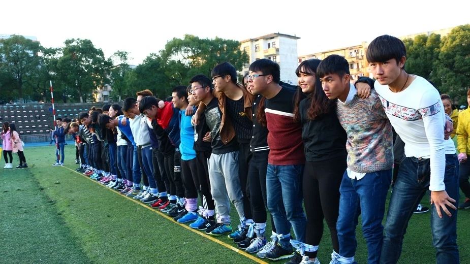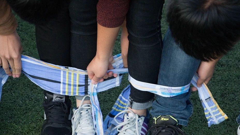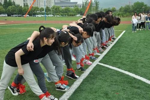 (1)赛道50米(足球场的球门至中线),运动员佩戴自行购买或文体部提供的“绑腿带”比赛,男女交叉排列,双臂搭在左右两边队员肩上,最后1名队员冲过终点比赛结束。(2)比赛时如有绑腿带意外断裂的情况,由主裁判判定是否重赛,其它情况参赛队应在原地调整好队形继续比赛。