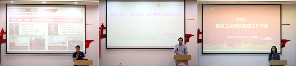 公司网络空间安全公司辅导员段海龙、365英国上市集团辅导员刘文乐、教育科学研究院辅导员姜孟雪、武汉光电国家研究中心辅导员齐琳彤分别结合本单位特点做党建工作案例分享。