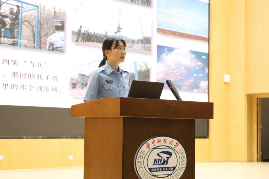 “乘风随舒卷,摇曳入晴空”,周钰同学分享了她在空降兵伞训过程中的亲身经历,唯有历经重重困难磨砺,才能拥抱云霄之梦。“空降兵的‘降’,是‘降’伏困难,决不投‘降’。”周钰同学如是说。