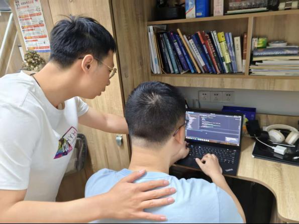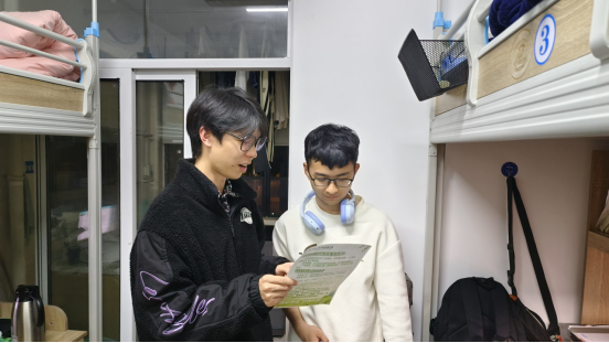 图为电子专业党支部杨广艺在宿舍指导同学学业