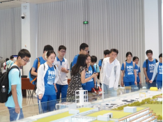 在武汉光电国家研究中心一楼展厅,研学师生们在讲解员深入浅出的讲解下对信息光电子、能量光电子和生命光电子三大领域的基础性科学和技术问题有了初步的认识,心中满载对光电科技的探索热情与学术启迪