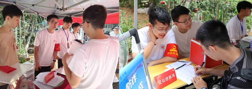 红心向党,热情澎湃。迎新点、咨询处、引导岗,党员先锋的旗帜迎风飘扬,40余名师生党员坚守在迎新服务最前线,他们用每一份耐心、每一次伸手,用挺身而出的无私奉献诠释“党员身份就是责任”的铮铮誓言。