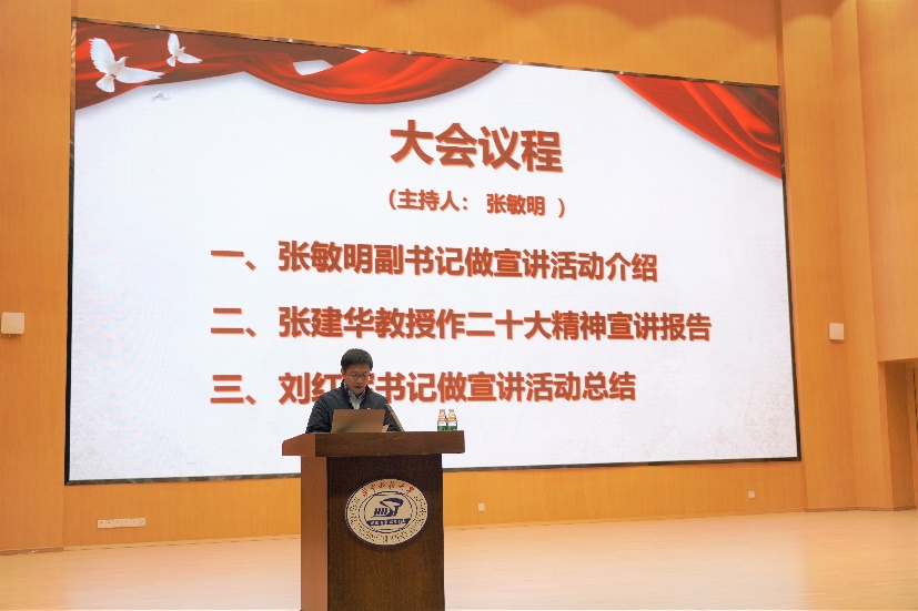 张建华教授以“深入学习党的二十大精神,高举旗帜,守正创新,坚定走高质量发展之路全面开启中国式现代化新征程”为题,全面深入宣讲了党的二十大精神。报告分为“深刻领会二十大精神与认识新时代特征”、“全面把握中国式现代化大趋势和发展导向”、“准确理解当前发展的目标任务与战略重点”、“紧密结合实际落实推进中国式现代化新征程”四个部分。