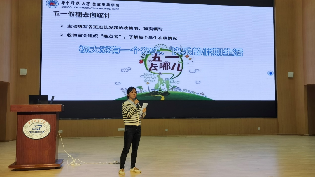 在本科2022级年级大会上,辅导员刘伊琳着重提醒广大同学,在欢度假期的同时,要提高安全意识,切实保护人身、财产安全,时刻注意消防安全、饮食卫生安全、交通安全、网络安全等。