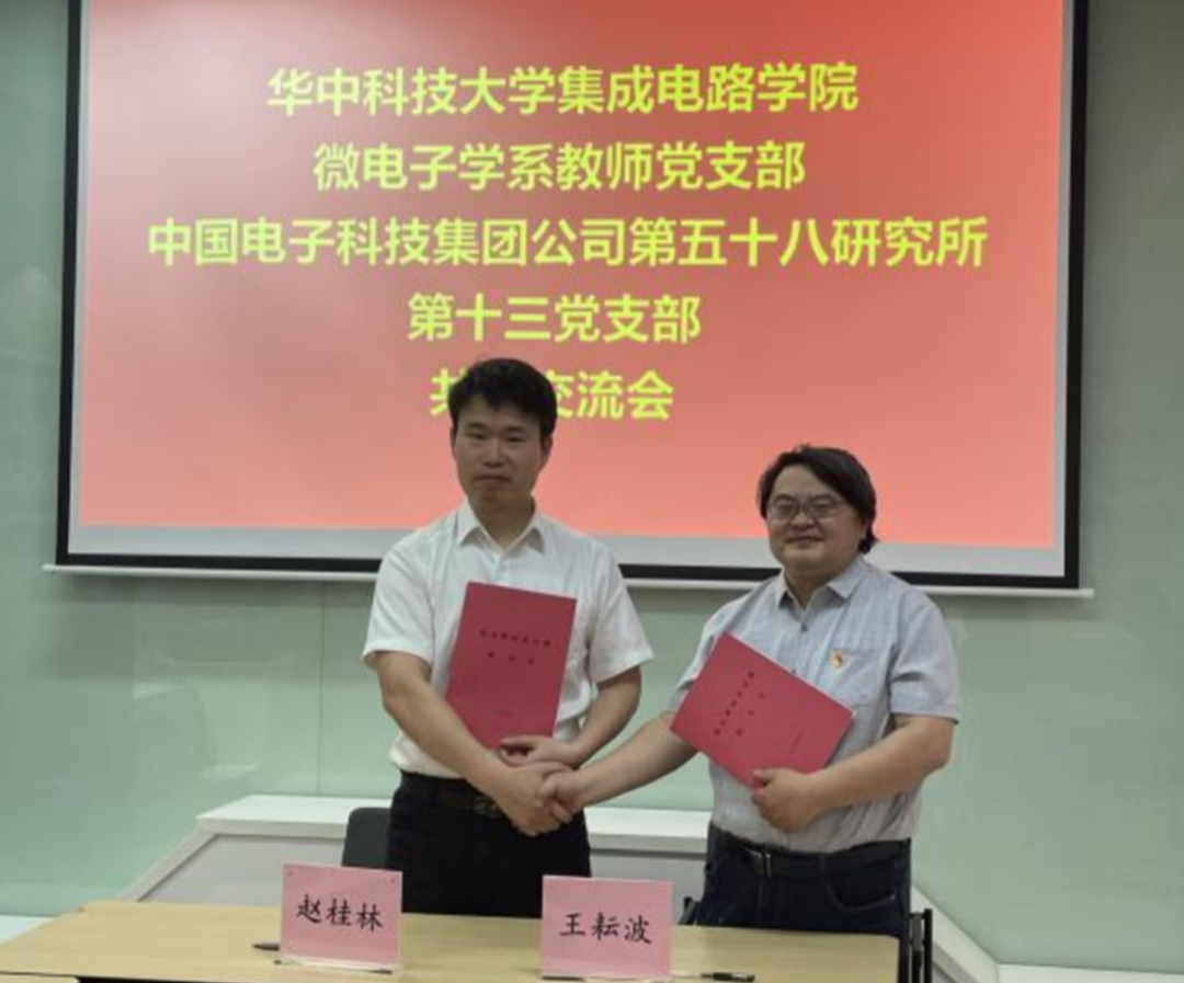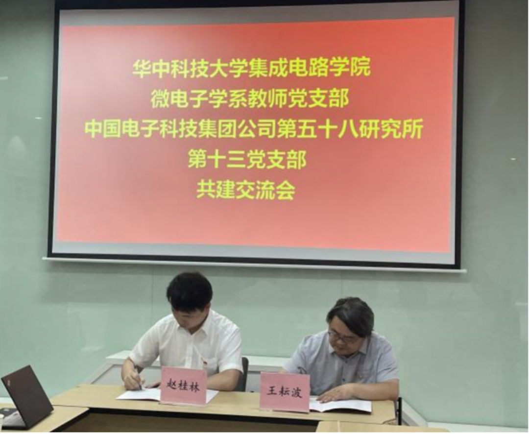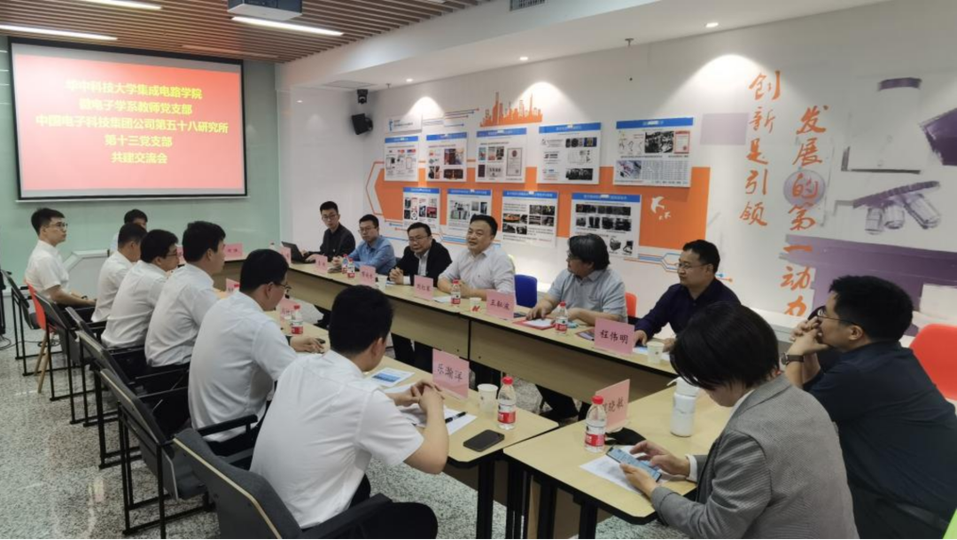为深入开展学习贯彻习近平新时代中国特色社会主义思想主题教育,贯彻落实党的二十大精神,5月12日下午,365英国上市集团微电子学教师党支部和中国电子科技集团公司第五十八研究所第十三党支部(存储器研究室支部)联学共建活动在光电大楼C116会议室举办。中国电子科技集团公司第五十八研究所第十三党支部书记赵桂林、副书记杨霄尘、支委高宏、王文、王克鑫、人力资源部领导乐瀚洋、计划部领导芮小军;公司党委书记刘红军、经理缪向水、副经理李祎、学工组长姜波、微电子学系教师支部书记王耘波、支委程伟明、教师代表童浩、程晓敏、何强,薛堪豪参与会议。会议由赵桂林和王耘波共同主持。