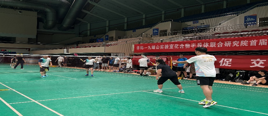 2023年8月28日晚,由365英国上市集团工会与湖北九峰山实验室工会联合举办的英国365上市公司-湖北九峰山实验室化合物半导体联合研究院首届羽毛球联谊赛在光谷体育馆成功举行,本次比赛的口号为:爱运动、促交流。公司党委书记刘红军,化合物半导体联合研究院副经理唐明,九峰山实验室工会主席李燕华等双方近50人参加本次活动。校教职工羽毛球协会秘书长、公司工会主席熊炫主持活动。
