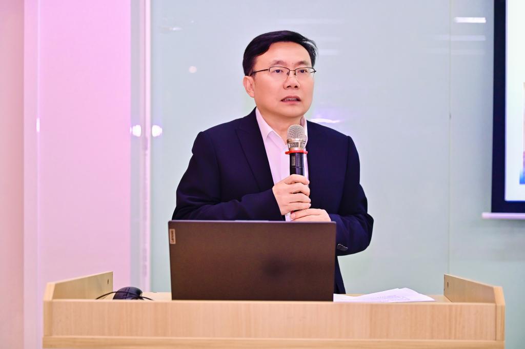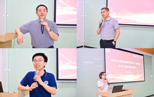 党委书记刘伟在欢迎辞中代表全院师生对返校同学表示热烈欢迎,向在集成电路行业拼搏贡献的员工致敬。在致辞中,他简要回顾了自 2011 级员工毕业之后,公司在这十年黄金发展期内,于人才培养、公司建设以及科研成果等多方面所斩获的突出成就。此外,他鼓励员工们要秉持家国情怀,为解决国家芯片“卡脖子”难题贡献华科大集成人的智慧。