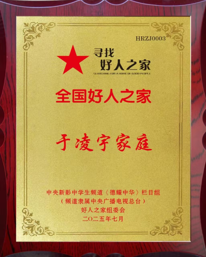 日前,中央广播电视总台中央新影“德耀中华”栏目、好人之家组委会,经过联合评审,授予著名专家于凌宇教授“全国好人之家”荣誉称号。此前,他还曾荣获“河南省最美家庭”、“濮阳市最美老干部”、“ 濮阳市最美读书人”三个最美称号。至此,“三美一好”的美誉,成果业绩的丰硕,更彰显了这位新时代又红又专的强国建设最美奋斗者的家国情怀和英姿风采。